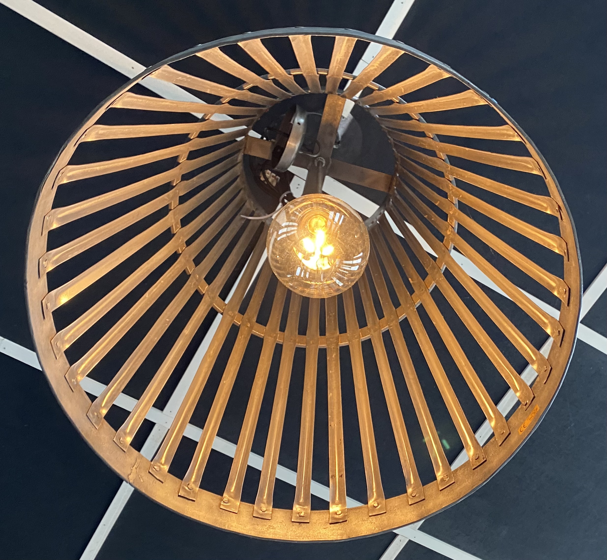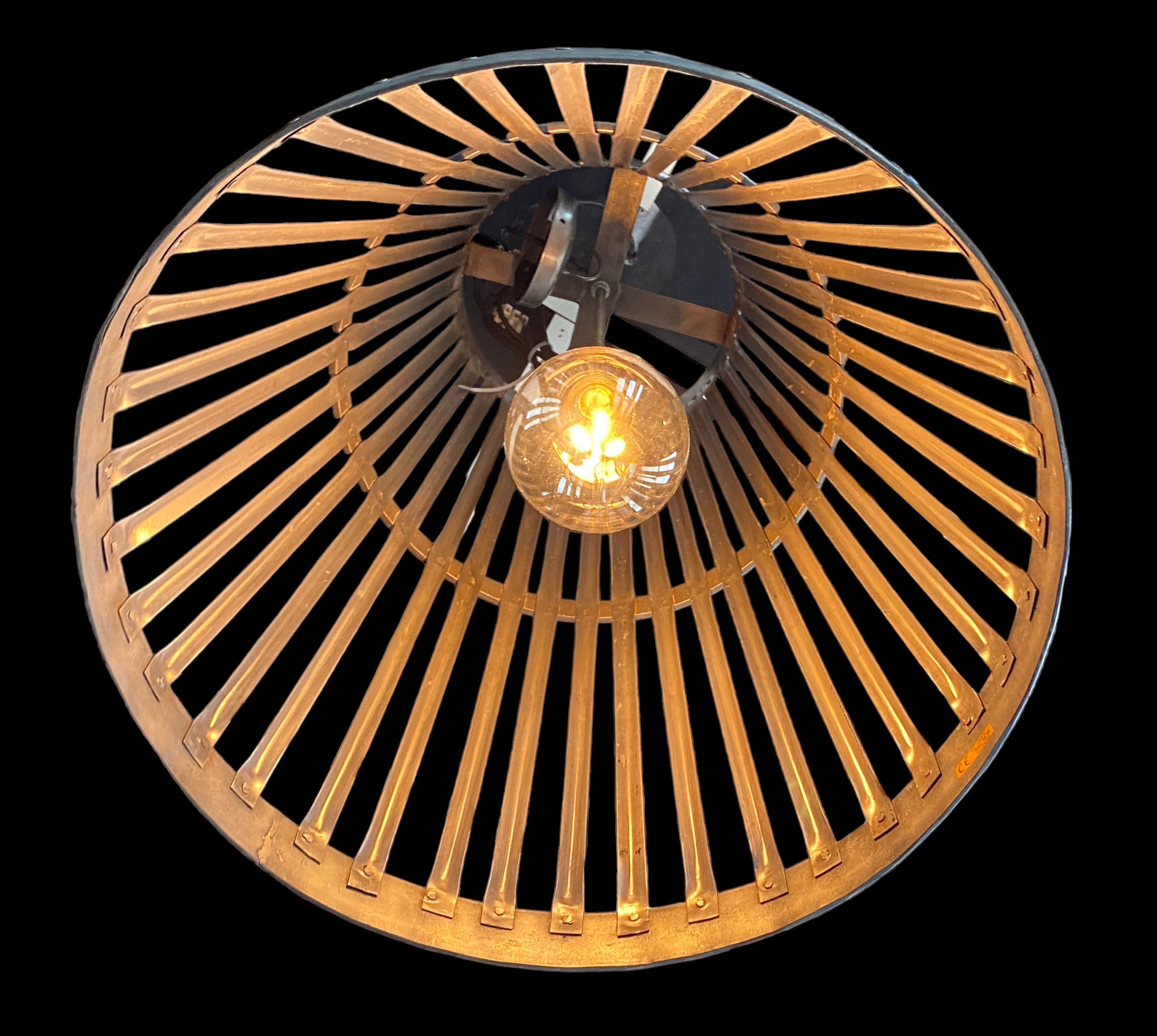 Stoer ijzeren hanglampen met een 'tralie' motief wat een mooi spreiding van het licht geeft.