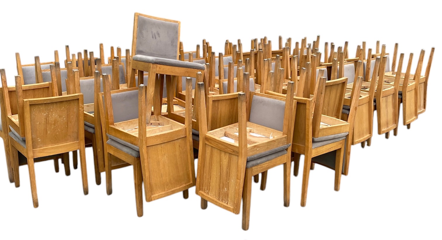 In dit geval ca 80 houten stoelen, gebruikt in de HORECA.