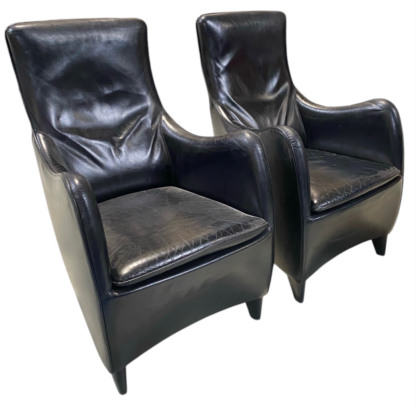 Set van twee originele Wittmann fauteuils in zwart leer.