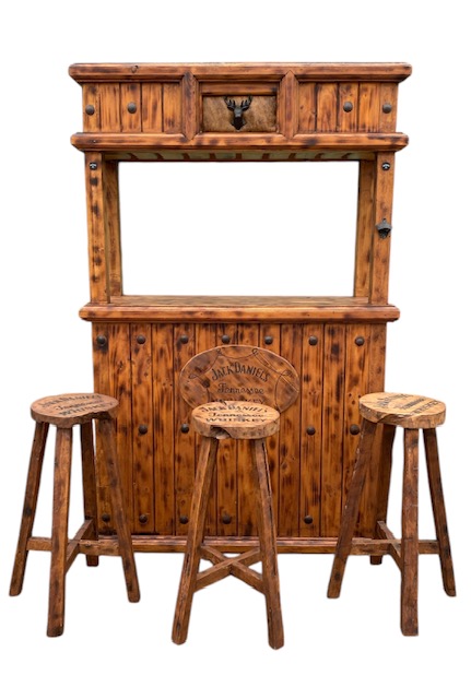 Deze set van 3 barkrukken en een houten bar zou in uw kantine kunnen staan voor de VRIMIBO.