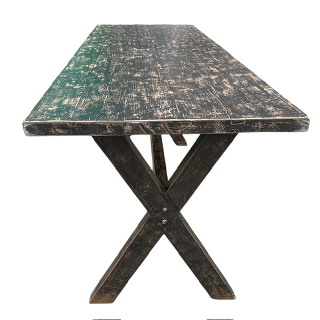 Stoere houten bartafel met een vintage uitstraling.