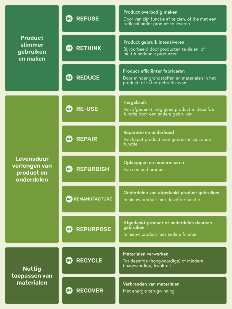 Een voorbeeld van repurpose is om afgedankte producten of onderdelen daarvan te gebruiken om nieuwe producten van te maken.