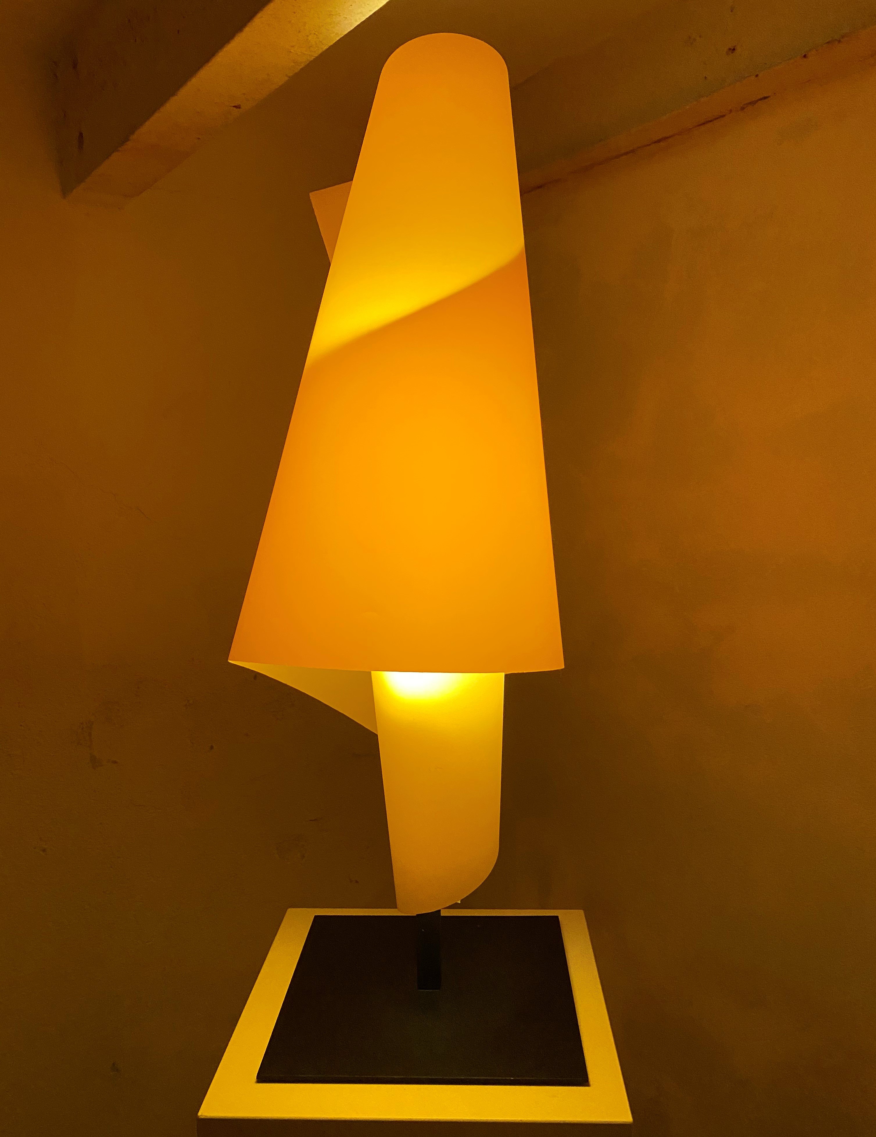 Het geheim van zijn lange leven is zijn eenvoud: een doorschijnend vel dat hem een textieluitstraling geeft, gerold rond een mast die tevens dient als steun voor de lichtbron.
